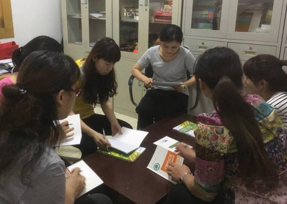 8月21日下班后组织老师培训,由参加市残联培训的汤老师和丁老师汇报学习内容。首先汤老师和丁老师对参训的PPT逐一讲解,之后大家按所学内容,再根据自己负责的孩子情况与汤老师和丁老师进行交流、讨论,相互吸取实践经验,提高专业化康复水平。