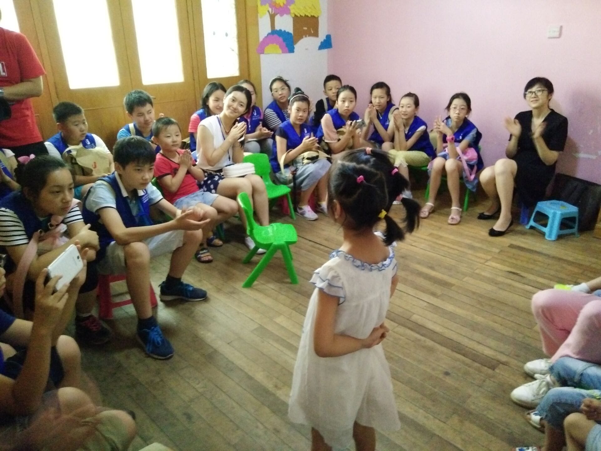 合肥电视台《小主播栏目组》来我中心给星星孩子们送关爱 8月3日下午,合肥电视台《小主播栏目组》领导和小主播孩子们、丁香社区领导30多人,冒着酷暑,来到我康复中心,他们给孩子们带来玩具、书本、食物。小主播们给星星孩子们表演朗诵、唱歌,星星孩子们随着歌声拍手、跳跃、欢笑,那些常常是表情淡漠的小脸……