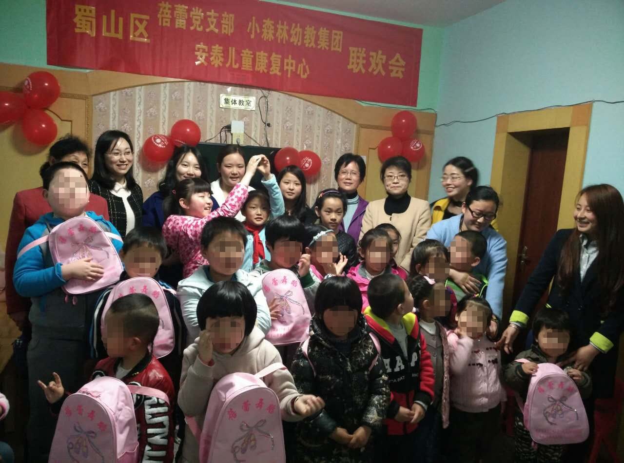 蜀山区丁香社区胡副书记、蓓蕾舞蹈学校党支部王静书记、小森林幼教集团黄山区园张亚青园长带领蓓蕾舞蹈学校、小森林幼教集团黄山园的学生老师来我康复中心,与我中心的孩子们一起联欢。他们不仅给孩子们送来书包、书本、糖果等,还给孩子们表演了舞蹈、唱歌、朗诵,康复中心的孩子也表演了舞蹈和唱歌。孩子们度过了一段……